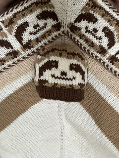 The sloth head hat slows down my original moose hat with a happy-go-lucky furry creature. The pattern consists of a repeating pattern of sloth heads around the crown of the head. The chart shows a grey palette with 4 shades, and the sample hat is done in brown with 3 shades. Play around with the colours to suit your personality. The pattern includes instructions for adult, teen, child, pre-school, toddler, and baby sizes. The adult hat has a separate pattern for a slouchy hat (my personal favourite) or a beanie which can be lengthened or shortened according to your preference. Happy knitting!