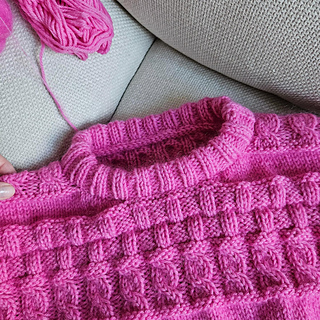 The sleeves are picked up and worked in even decreasing intervals and later on finished with a slight ballon shape and a 2x2 ribbed cuff.