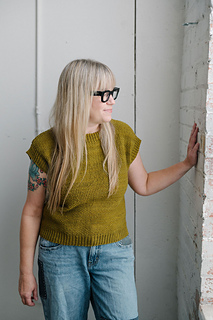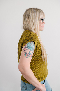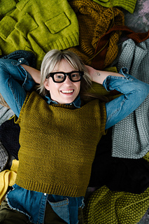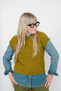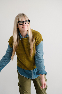fresh take on a classic layering piece. Knit in my favorite chartreuse-y shade of Magpie Fibers Quartet Worsted, this vest features a rich seed stitch texture that feels both timeless and cool. Wear it solo for a statement look, or layer it over a long-sleeved shirt for effortless versatility. The Strange Brew Vest is worked bottom-up in the round, then knit flat from the underarms and joined at the shoulders for a clean finish. Fun to knit and easy to style, it’s a piece you’ll reach for again and again – make one in your own favorite shade.