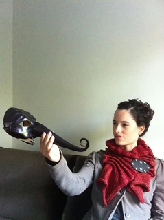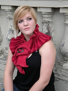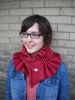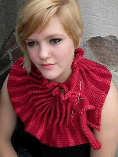Strata is a collar knitted side to side that may be worked in a single color or in stripes with ridges along one edge and a ruffling fullness along the other edge. It may be worn with the ruffles spreading onto the shoulders or turned upside down with the ruffles framing the face, the front fastened with JUL screw-in, no-sew closures, found at your LYS or several online retailers. (juldesigns) The ridges on the edge of this collar are intended to evoke the layers, or strata, of sedimentary rocks.