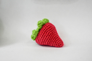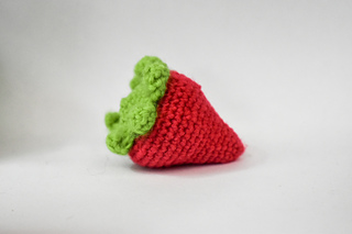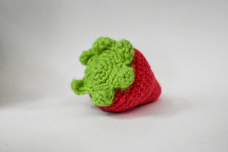 I crocheted this strawberry using weight 3 yarn and a 2 mm hook. This pattern will work with a larger weight yarn and hook respectively. Finished product will be approximately 2 inches tall.