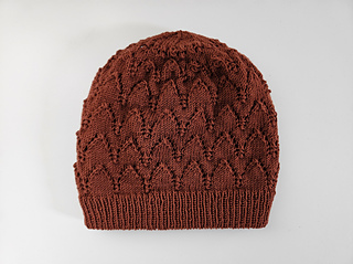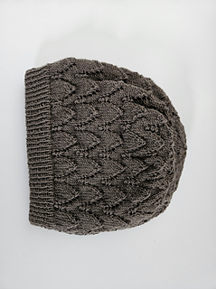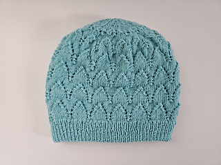 The strawberry hat is worked from one end to the other; starting with a magic circle and ending with the lace pattern.