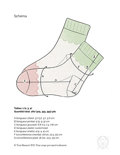 Quatre tailles sont disponibles dans ce modèle : 1 (18 cm de tour de pied) ; 2 (20 cm de tour de pied) ; 3 (22,5 cm de tour de pied) ; et 4 (25 cm de tour de pied). Notez que les tailles indiquées sont mesurées autour de la chaussette, alors déterminez votre taille en mesurant votre pied et en soustrayant 10 %.
