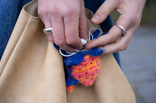 Caution:Originally the pouche is knitted double-stranded (fingering plus a fluffy lace weight), but you can use any weight of yarn you want and have! For a single-stranded version use a sport weight yarn.