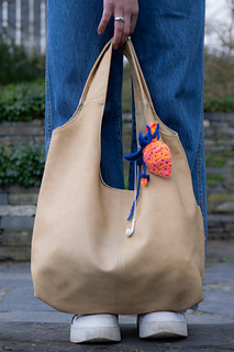 The pouche is knitted from the bottom up starting with a circular cast on.The drawstrings are worked with the I-cord technique. The strap length are adjustable. At the end the seeds are worked with embroidery.