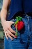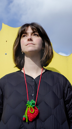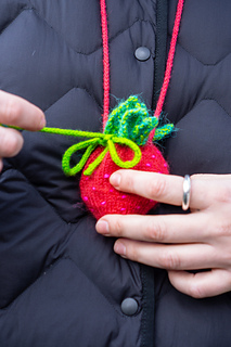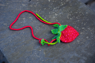 Die Erdbeer Pouch ist eine Mini-Tasche für Kopfhörer oder Accessoires. Sie kann als Taschenanhänger oder mit Trageband um den Hals getragen werden.