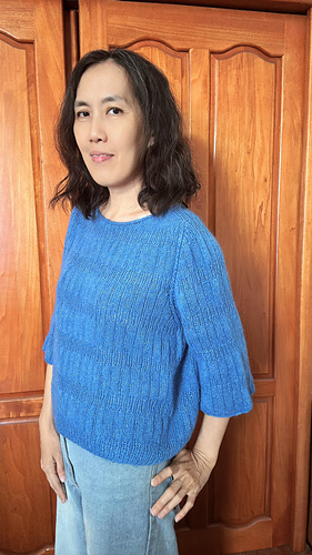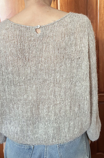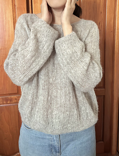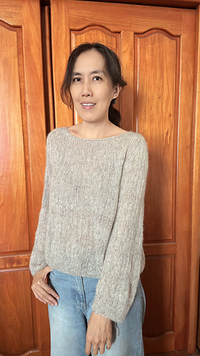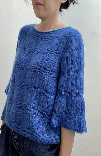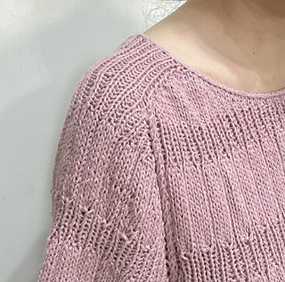 This is a seamless, top-down design. It begins with a provisional cast-on, followed by German Short Rows to meticulously shape the neckline and shoulder slope. The piece is then joined to work in the round, with integrated increases for the sleeves and body. The neckline is elegantly finished with a professional I-cord bind-off.