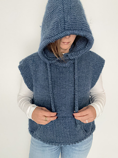 This hooded vest is everything! It is knit with a chunky weight yarn and has a hooded cowl to keep you warm all winter.