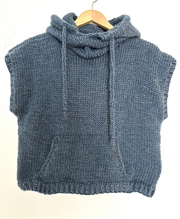 Details are it! This design has a pocket that is knit into the front for a seamless finish, a drawstring for the hood, and a cowl neck that looks great scruched down or pulled up with the hood.