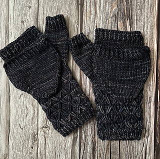 The easy cross pattern helps to break up pooling, which makes these mitts a perfect choice for your favorite variegated yarn!