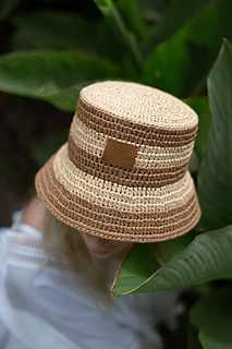 > Striped bucket raffia hat