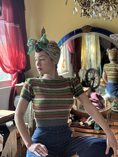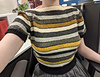 Stripes ahoy! Every colour from the box of oddments has been brought forward to make this jumper as bright as the beach in summer time. Wear it with slacks or with your new tailor-made.