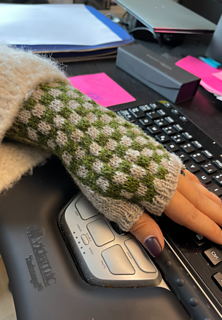 This pattern is suitable for knitters with some experience working in the round and following charts. The mitts include a thumb gusset with increases and a shaped thumb.