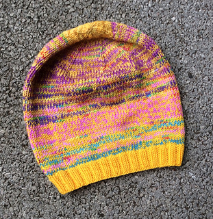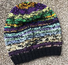 Negative ease hat in sizes small, medium, large (21, 22, 23 inches). I used leftovers of 3 of the minis to make a large pom pom for the top.