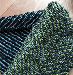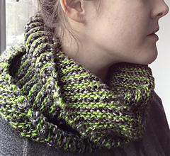 This is a simple stashbuster cowl made from alternating stripes of any two yarns (ideally somewhere from DK to bulky weight). You can pair two yarns of a similar weight and analogous colors for a more uniform fabric, or combine wildly different yarns in unexpected ways. For added visual interest, the alternating color stripes are tilted on a diagonal. Pattern includes instructions and diagrams to keep the edges stretchy but not too loose.