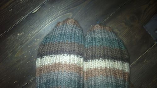Basic ribbed knee-highs with room for the calf with plain / striped texture, and a “spine” running in the middle.