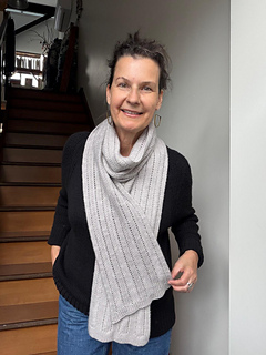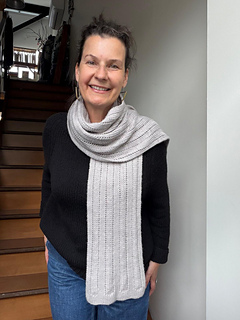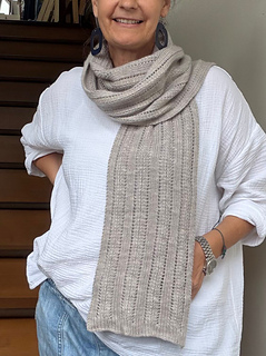 You can make the scarf wider by adding lace repeats in increments of 15 stitches (approx. 5cm or 2”) or longer as your taste and the yarn allows. This yarn will grow in length with blocking and wearing.