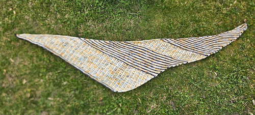 Asymmetrisches Dreieckstuch, gestrickt von der Spitze mit regelmäßigen Zunahmen.