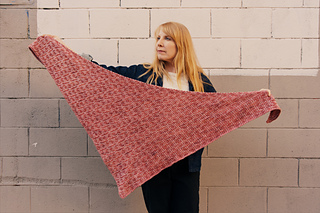 Suddenly Rose is constructed bottom up, has a triangular shape by increasing along the left edge, and includes a 3-stitch i-cord border.