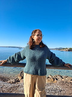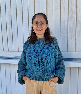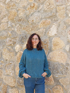 Está trabajado en piezas planas y luego unidas con una costura en relieve, con instrucciones escritas paso a paso, gráfico de la trama de puntos y vídeos de cada sección.