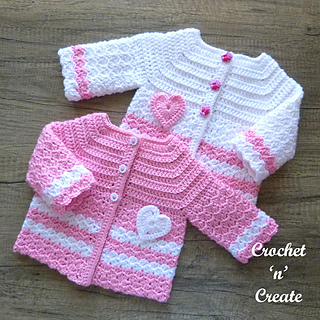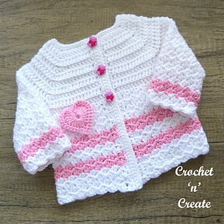 Crochet Sugar Candy Baby Jacket- A lovely two colour baby jacket, decorated with a single love heart, what’s not to love? about this pattern and it can also be made smaller or bigger just by changing your hook size.