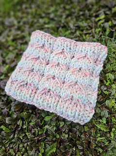 The finished cowl should measure 8” x 10.5” unblocked when laid flat. Final measures will also depend on number of cast on stitches and rows.