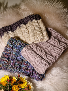 This pattern is written in US standard terms and requires familiarity with cable knitting and working in the round. This cowl knit pattern is recommended for advanced beginners. The width and height of this cowl pattern is customizable to your preference.