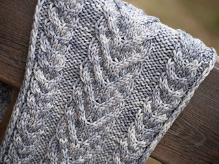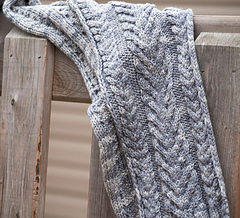 Cables! This is a warm squishy scarf with enough length to wrap around you a couple of times. There are two different cable patterns on a background of reverse stockinette.