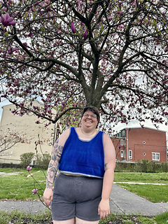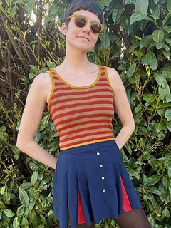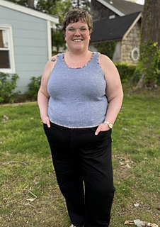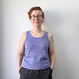 This tank top is designed to be worn with approximately 4” (10 cm) of negative ease at the bust/chest. (This means the tank’s circumference will be less than your body’s bust/chest circumference.)