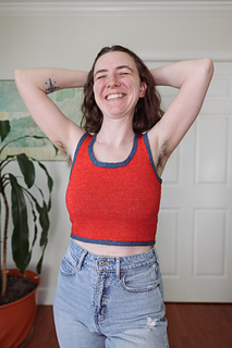 Sumac Tank is a simple fitted tank top featuring contrasting double-knit trim. This tank includes optional bust darts as well as optional waist shaping to help you get your ideal fit. Sumac is also worked top-down, making it easy to adjust the body to your ideal length.