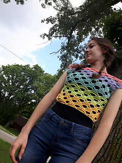 This is a quick weekend pattern. The front lacy design is easy to follow even for experienced beginners. The whole top only requires the knowledge of double crochet and chains.