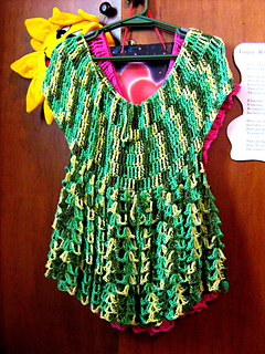 Hello! This is my own design for a beautiful crochet blouse with flounces — and now you can make it too!