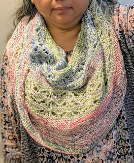 Larger shawl (shown) MC: 450 yds CC: 350 yds.