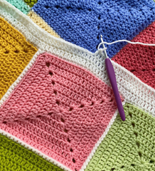 This gorgeous, beginner-friendly blanket is perfect for laying out for picnic, or you could size up or down to make any size blanket you like. The written pattern has full instructions and photo tutorials for the squares, invisible join, single crochet join, and border. There are also links to the relevant video tutorials for easily learning new techniques you might not have come across before.