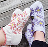 Du får tre motiv på strumpan att välja mellan. Ett med bara blommor och två med biet som flyger i två olika riktningar.