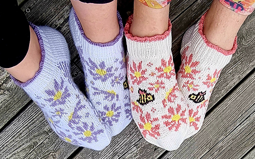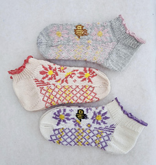 You get three motifs on the sock to choose from. One with just flowers and two with the bee flying in two different directions.