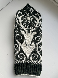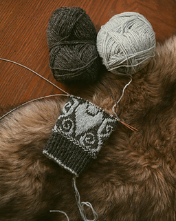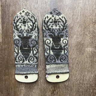 These mittens are knitted from the cuff, starting with a twisted rib, followed by a latvian braid, and then the two color pattern starts.
