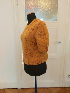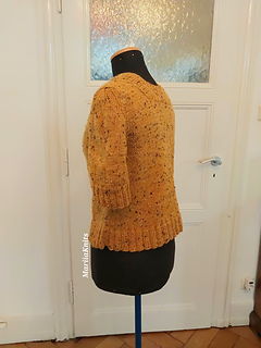 The sweater is worked flat and consists of 4 parts that are then sewn together. Only the collar is worked in rounds.