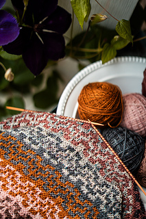 3.75" wide for 20 sts (two chart repeats) - US 6 mosaic worked flat 1.5" long for 18 rows - US 6 mosaic worked flat