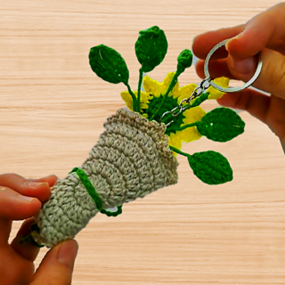 Materials: Alize Cotton Gold yarn (or similar), 2.50 mm crochet hook, tapestry needle, metal keychain, floral wire, scissors, glue