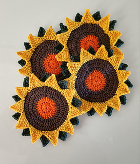 This fun crochet pattern is for making pretty sunflower coasters :)