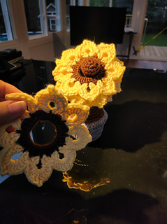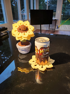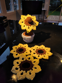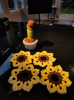 This is a Coaster set with a hole in the middle so they can be stored on the flower pot/stem when not in use.