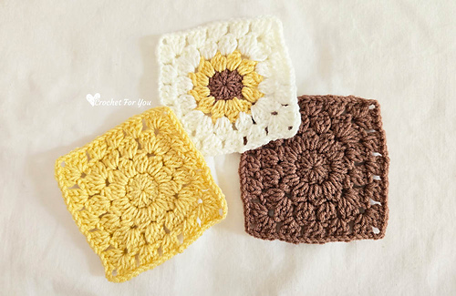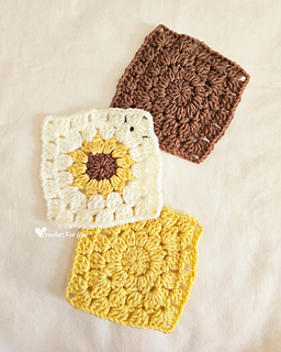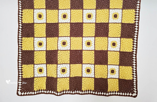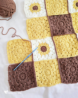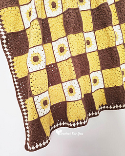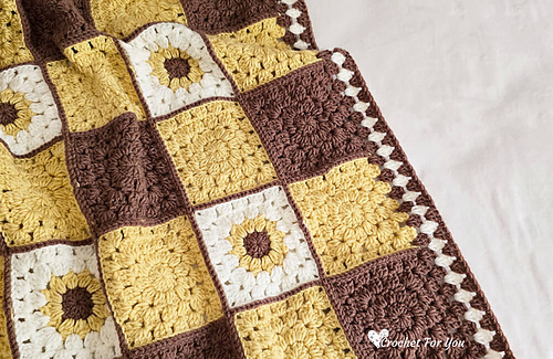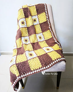 This blanket is made by joining lovely sunflower granny squares together, each square crocheted individually and joined together at the end.