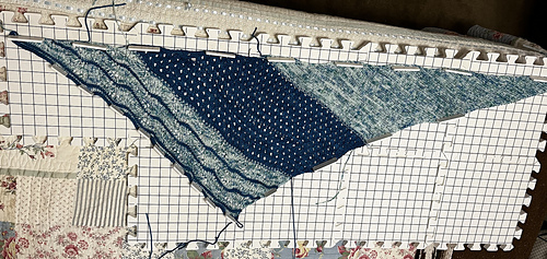 Approximately 60” (152cm) wide by 28” (71cm) tall at end after blocking.