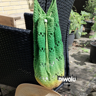 Going to the beach? Or maybe a casual picnic? This drawstring totebag is the perfect companion when you’re going out. It is easy to make, and you can use your favourite kind of yarn, as it is easy to adjust the size. I use light weight yarn and a 4.0 / F crochet hook.