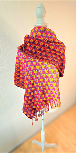 Included in the pattern is also info on how to easily adjust the size, which allows you to create a blanket, a scarf etc using the same pattern.