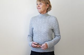 Shown in Woolstok Worsted yarn by Blue Sky Fibers (100% Fine Highland wool; 123 yards /112 m per 50 g skein); color: Grey Harbor #1304; 10(10, 12, 13, 14, 15, 15) skeins, or for comparable yarn, approximately 1150(1185, 1385, 1500, 1615, 1735, 1845) yards / 1050(1085, 1265, 1370, 1475, 1585, 1690) m.