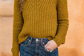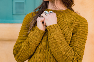 Design: The Sunstone Pullover is a boxy raglan sweater that blends texture and shape for bold visual impact. The front and back body are worked in plush brioche, with strategic yoke decreases forming elegant diagonal lines that converge into a striking center-front “V.” The deep yoke adds drama and balance to the silhouette, while the sleeves feature traditional tapered shaping in chunky garter stitch to echo the dimensionality of the brioche. A close-fitting neckband, along with 2x2 ribbing at the hem and cuffs, finishes the design with a polished, modern edge.