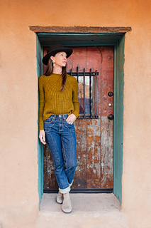 Construction: This sweater is knit seamlessly from the top down in the round. Stitches are cast on at the top of the neckband, which is worked first. Short rows shape the back neck for a comfortable fit. Once the yoke is complete, sleeve stitches are placed on hold while the body is knit. The sleeves are then returned to the needles and finished in the round.