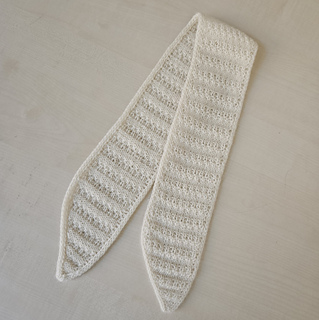 The Surfer Scarf is worked flat from tip to tip, with the stitch pattern established right from the start while an integrated i-cord edge is worked simultaneously. Increases shape the beginning of the scarf, and decreases form the final tip. The stitch pattern repeats over eight rows, making it easy to memorize, and is provided in the pattern both as a chart (p.5) and as fully written instructions (p.7).